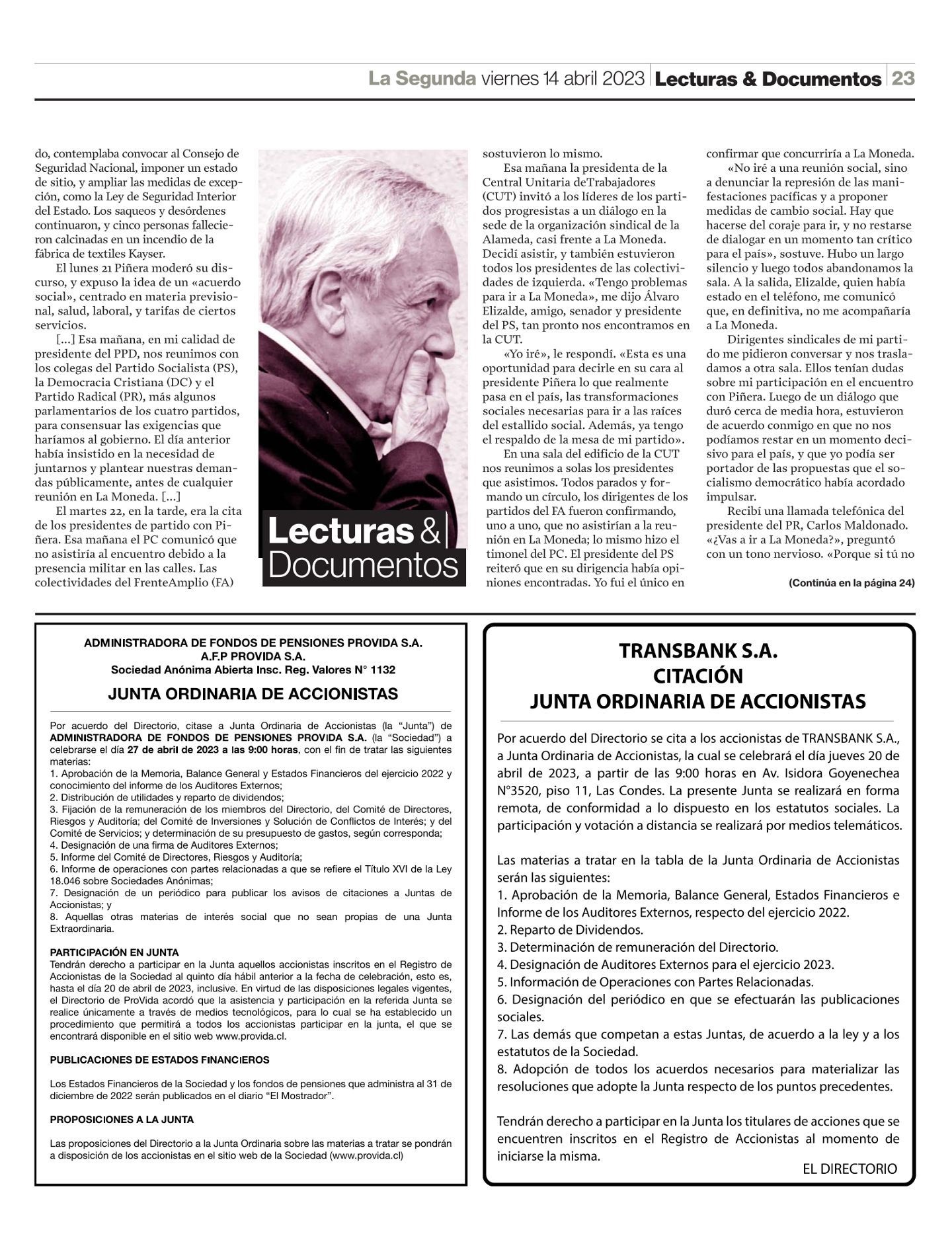 Tercer Aviso de Prensa – La Segunda (14-04-2023)